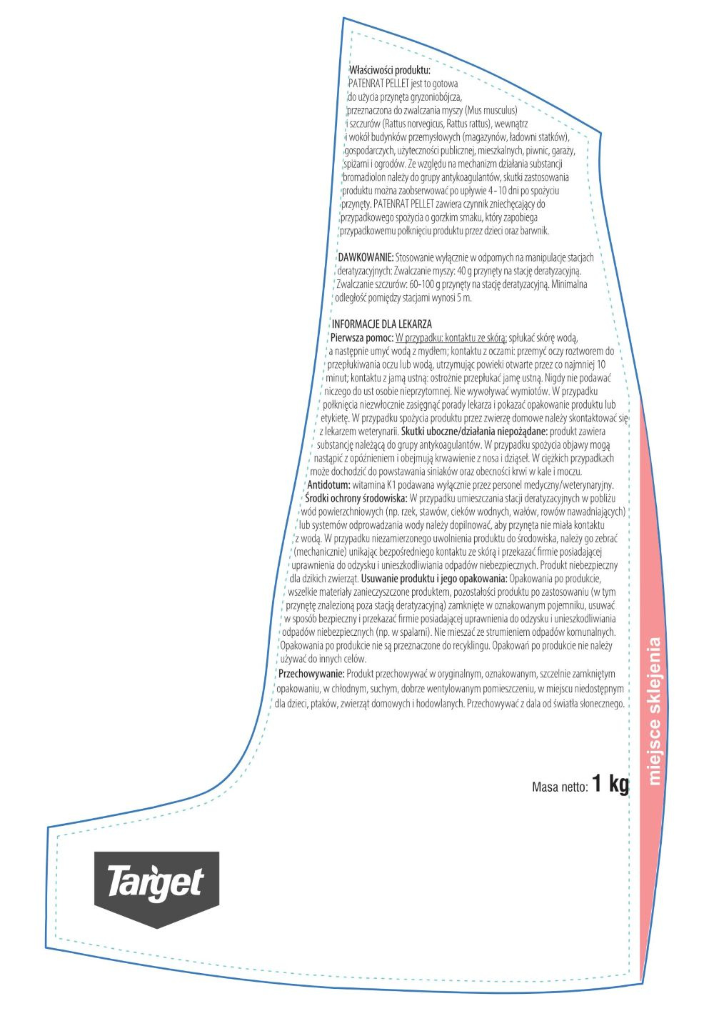 Pattenrat Pellet marki Target to trutka na szczury i myszy w formie granulatu, która przeznaczona jest do stosowania przez użytkowników profesjonalnych. Przynętę gryzoniobójczą zaleca się stosować wewnątrz i wokół budynków (przemysłowych, domów, bloków mieszkalnych itp.). Działanie preparatu widoczne jest już w ciągu 4-10 dni po spożyciu granulek przez gryzonie.