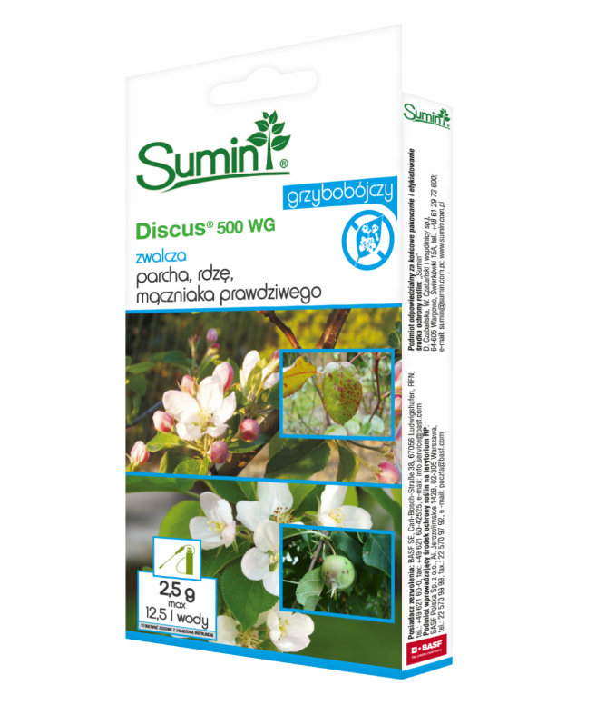 Środek grzybobójczy Discus 500 WG to skuteczny preparat o działaniu lokalnie układowym do stosowania zapobiegawczo (polega na rozprzestrzenianiu się substancji biologicznie czynnej poprzez dyfuzję w fazie gazowej na liściach). Forma granul do sporządzania zawiesiny wodnej to wygoda użytkowania za każdym razem, gdy Twoje rośliny potrzebują wsparcia. Przeznaczony jest do stosowania przy użyciu samobieżnych lub ciągnikowych opryskiwaczy sadowniczych. Zwalcza choroby grzybowe takie jak parch jabłoni, mączniak prawdziwy czy czarna plamistość róż.