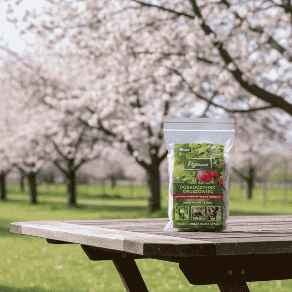 Filcowe opaski z dobroczynkiem zawierają drapieżne roztocza, które możesz wykorzystać do walki ze szkodnikami. Na opasce znajduje się przynajmniej 15-30 zimujących samic zdolnych do wydania kolejnego pokolenia roztoczy, które wysysają od kilku do kilkunastu przędziorków i nawet 300 szpecieli dziennie. Wygodna forma do natychmiastowego zamocowania i skuteczność dobroczynka sprawiają, że jest on idealnym rozwiązaniem zarówno do przydomowych ogrodów, jak i większych upraw sadowniczych.