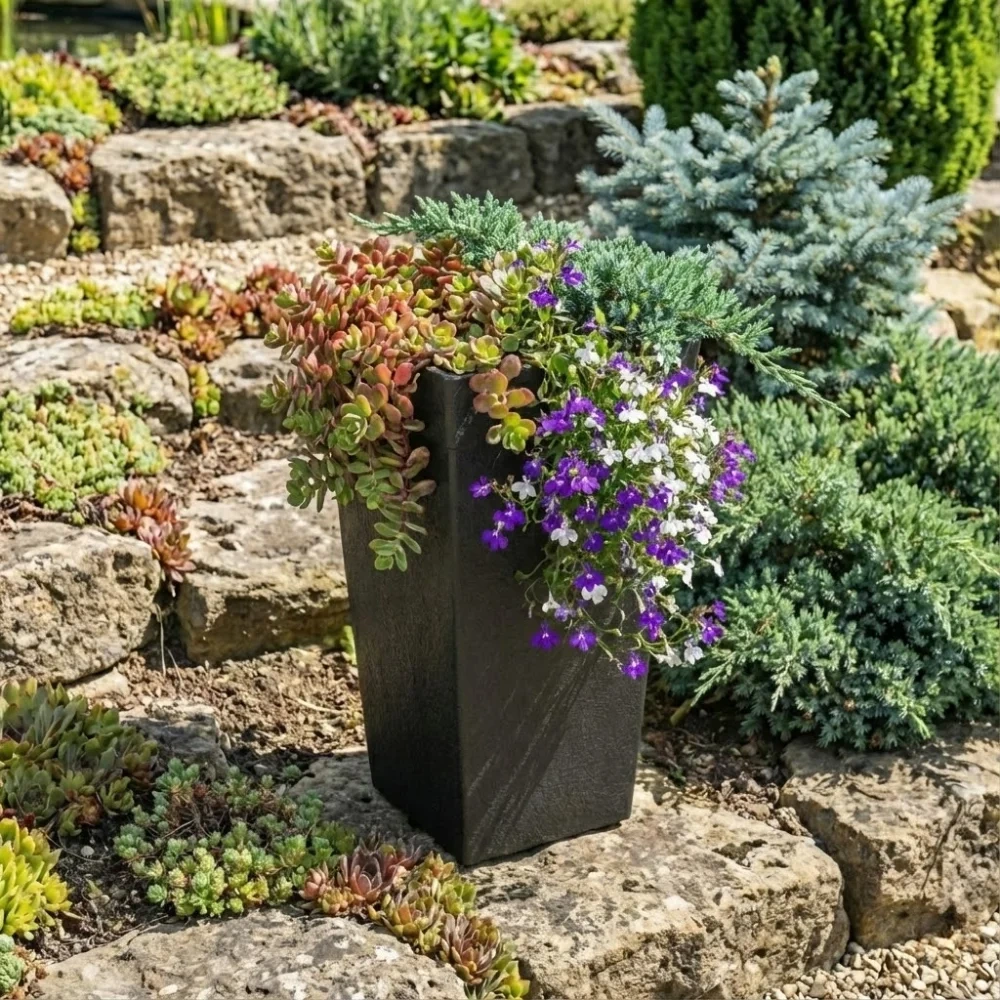 Wymiary 26 x 26 x 50 cm zapewniają odpowiednią przestrzeń dla roślin ozdobnych, traw dekoracyjnych czy mniejszych krzewów. Wykonana z wysokiej jakości tworzywa doniczka jest lekka, trwała i odporna na działanie warunków atmosferycznych, co gwarantuje estetyczny wygląd przez długi czas.