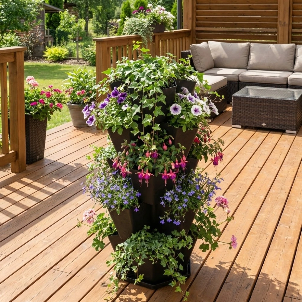 Donica 5-piętrowa do sadzenia roślin 37x68cm ŁUPEK nowoczesna i funkcjonalna donica pięciopiętrowa idealna dla miłośników zieleni, którzy chcą maksymalnie wykorzystać dostępną przestrzeń. Dzięki pionowej konstrukcji umożliwia efektowne sadzenie roślin na kilku poziomach, tworząc wyjątkową, zieloną aranżację na balkonie, tarasie lub w ogrodzie. Wykończenie nadaje donicy elegancki, ponadczasowy wygląd, który doskonale komponuję się zarówno z nowoczesnym, jak i klasycznym otoczeniem. Wysokiej jakości tworzywo marki Multy Home cechuję się trwałością, odpornoscią na warunki atmosferyczne oraz łatwością w utrzymaniu czystości. Donica o wymiarach 37 x 68 cm świetnie sprawdzi się do uprawy ziół oraz kwiatów, pozwalając cieszyć się zielenią nawet na niewielkiej powierzchni.