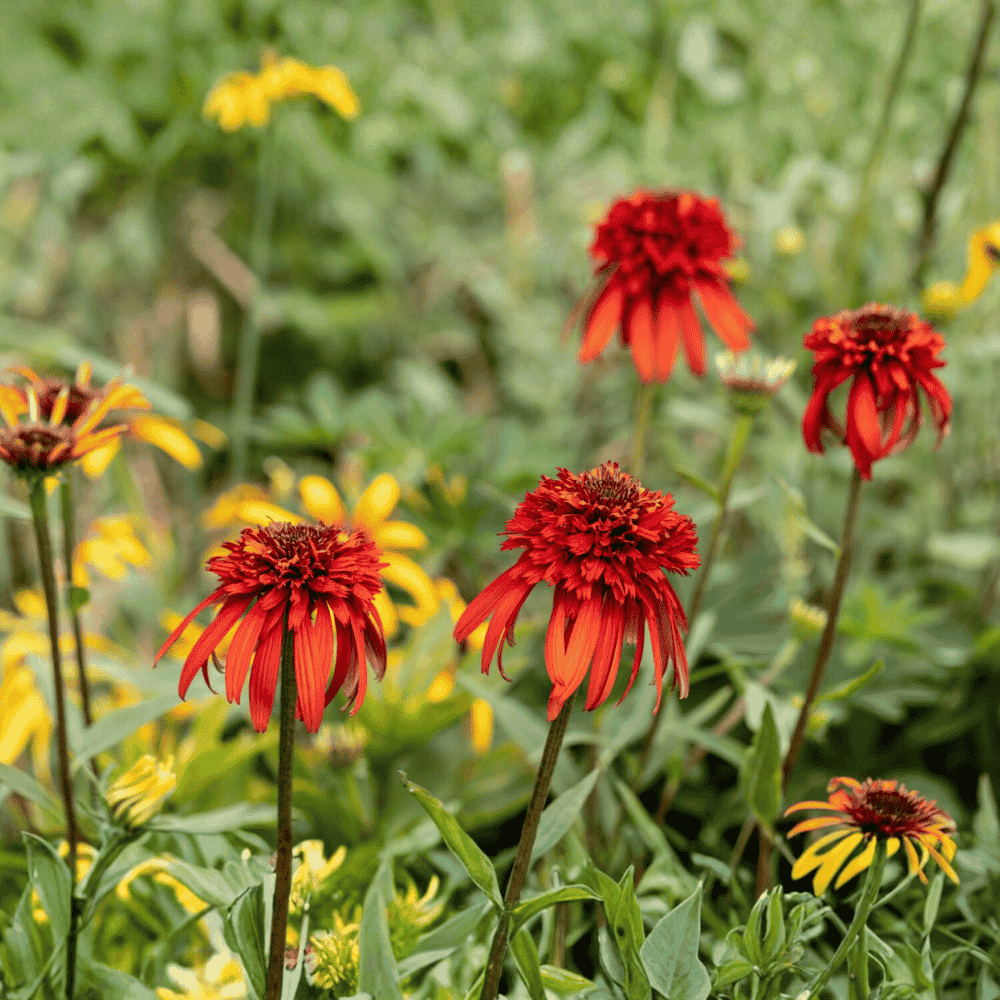 Jeżówka Hot Papaya to wyjątkowa odmiana, która wnosi do ogrodu wyjątkowe, żywe barwy. Jej duże kwiaty zachwycają intensywnym pomarańczowo czerwonym kolorem z wyraźnym ciemnym środkiem. Roślina dorasta do około 60 - 80 cm. Kwitnie obficie od lata aż do wczesnej jesieni, przyciągając pszczoły, motyle i inne owady.