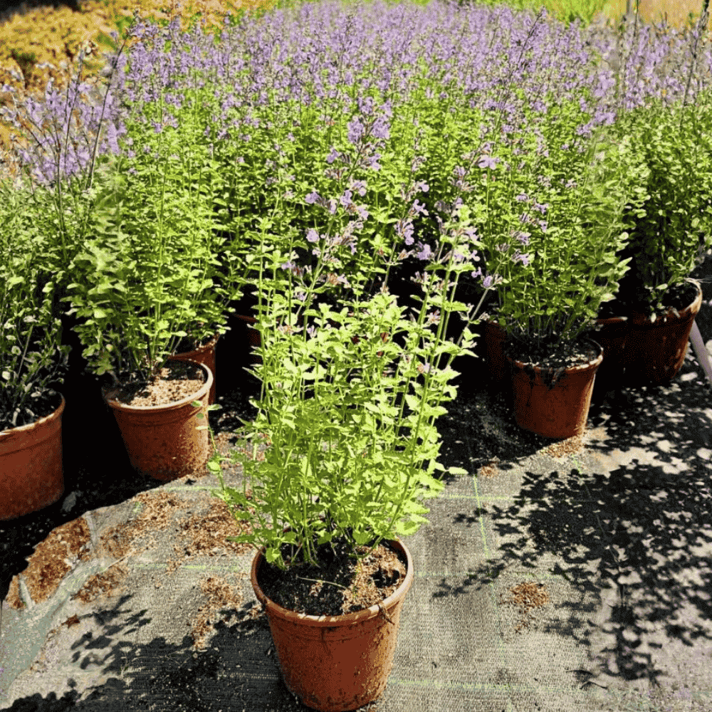 Kocimiętka Fasena Walkers Low to jedna z najbardziej cenionych odmian kocimiętki - długokwitnąca i niezwykle dekoracyjna. Tworzy gęste, lekko przewieszające się kępy o wysokości około 40 - 50 cm, dzięki czemu sprawdza się na rabatach, wzdłuż ścieżek i w ogrodach. Od maja do września obsypuje się mnóstwem drobnych kwiatów w odcieniach lawendowo niebieskich, które pięknie kontrastują z szaro zielonymi liśćmi. Roślina przyciąga pszczoły i motyle.