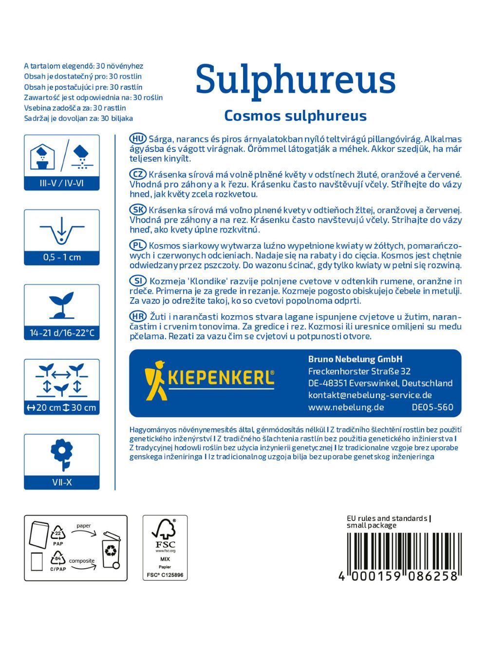 Kosmos Sulphureus to niezwykle efektowna, jednoroczna roślina ozdobna zachwycająca intensywnie żółto - pomarańczowymi kwiatami, które wnoszą do ogrodu ciepło i energię przez całe lato aż do jesieni. Roślina rośnie szybko, jest odporna na suszę i bardzo niewymagająca, dzięki czemu doskonale sprawdza się zarówno w ogrodach przydomowych, na łąkach kwietnych, rabatach jednorocznych oraz w uprawie na kwiat cięty. Kwiaty kosmosu często odwiedzają pszczoły i motyle.
