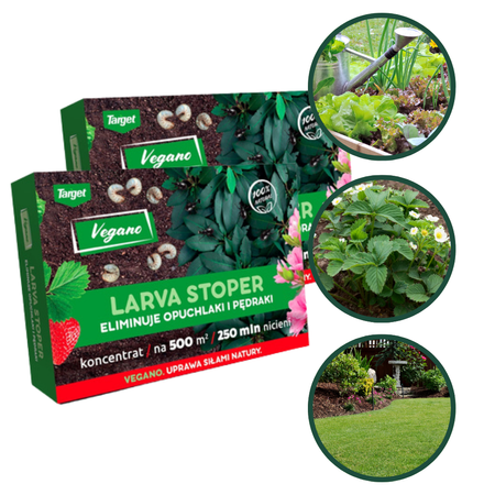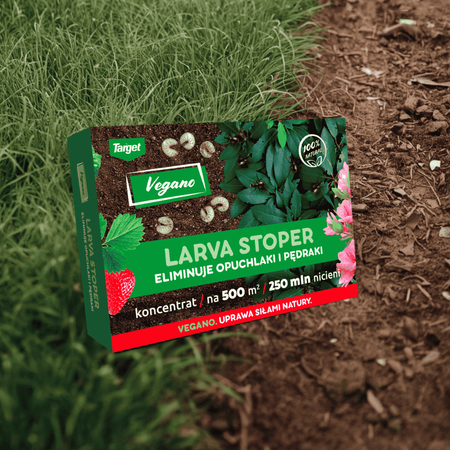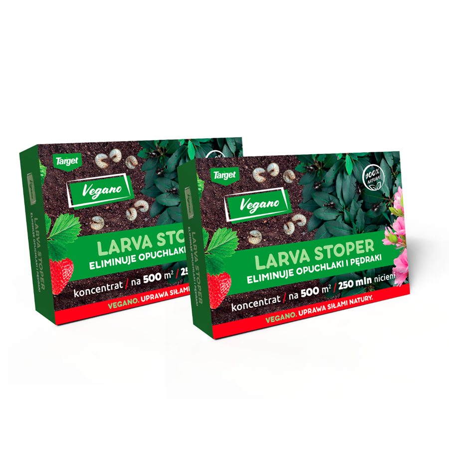 Larva Stoper Natural jest preparatem mikrobiologicznym przeznaczonym do zwalczania larw szkodników w uprawach warzyw, owoców, roślin ozdobnych oraz na trawnikach. Preparat skutecznie likwiduje żarłoczne stadia larwalne różnych chrząszczy, w tym pędraki chrabąszcza majowego czy larwy opuchlaków. Skład Larva Stoper opiera się na niepatogenicznych nicieniach Heterorhabditis bacteriophora, które zwalczają larwy szkodników roślin. Nicienie te wnikają do organizmów szkodników, a następnie uwalniają bakterie, które niszczą je od środka żywiąc się ich tkankami. Taki proces powoduje zamieranie szkodników nawet w ciągu doby od zastosowaniu produktu. Larwy szkodników przybierają wówczas czerwoną barwę, pozostają w glebie i tam się rozkładają.