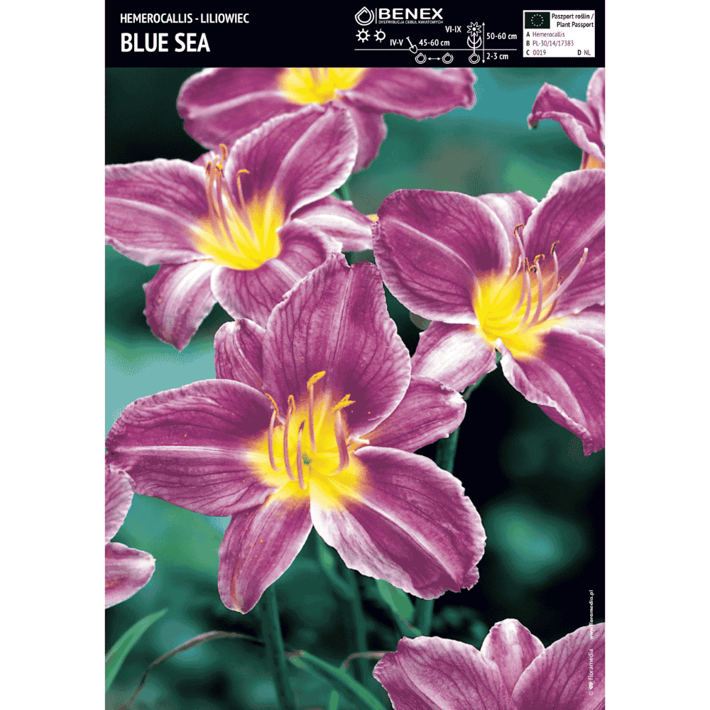 Liliowiec Blue Sea to efektowna, wieloletnia roślina o pełnych, dużych kwiatach w odcieniu delikatnego fioletowo-niebieskiego, która wprowadza do ogrodu elegancki i subtelny akcent kolorystyczny. Kwiaty wyrastają na długich, wyprostowanych pędach, które wznoszą się ponad gęste, trawiaste liście, tworząc efektowne kępy. Każdy kwiat trwa jeden dzień, ale roślina kwitnie obficie, dzięki czemu rabaty są udekorowane przez wiele tygodni w sezonie. Liliowiec Blue Sea kwitnie od lata do wczesnej jesieni i doskonale nadaje się do rabatach, ogrodów naturalistycznych, pojemników oraz jako roślina ozdobna w zestawieniach kolorystycznych.