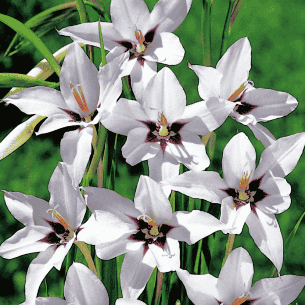 Mieczyk Abisyński to elegancka i wyjątkowa roślina cebulowa, która zachwyca delikatnymi, pachnącymi kwiatami. Kwiaty są białe z purpurowym środkiem, często o subtelnym, lawendowym odcieniu. Charakterystyczny jest intensywny, słodki zapach, który sprawia, że mieczyk abisyński jest chętnie sadzony zarówno w ogrodach, jak i w pojemnikach na tarasach lub balkonach. Roślina wytwarza smukłe, wzniesione pędy, na których pojawia się kilka kwiatów, dzięki czemu prezentuje się bardzo lekko i elegancko. Kwitnie od lata do wczesnej jesieni, wnosząc do ogrodu egzotyczny klimat. Doskonale nadaje się również do wnętrz jako kwiat cięty, wprowadzając aromat i dekoracje.