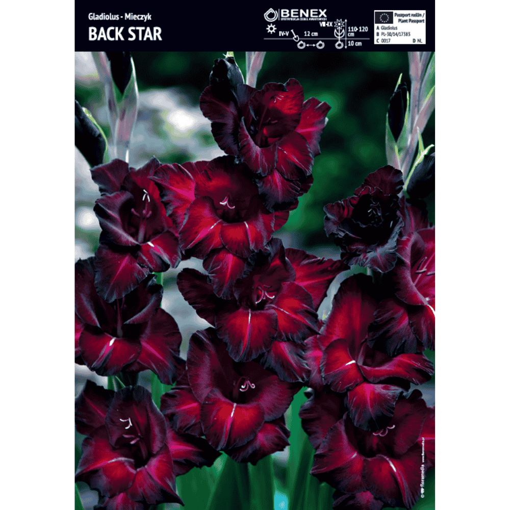 Mieczyk Back Star to efektowna odmiana o wyjątkowo ciemnych, niemal bordowych kwiatach, które wprowadzają do ogrodu elegancję i nowoczesny akcent. Kwiaty wyrastają na wysokich, mocnych pędach, zwykle w liczbie 6-10 na jednym pędzie. Płatki są szerokie, lekko falujące, a intensywna, głęboka barwa nadaje roślinie wyrazisty i luksusowy charakter. Mieczyk Back Star kwitnie od lata do wczesnej jesieni , doskonale sprawdzając się na rabatach, w większych kompozycjach ogrodowych, a także jako kwiat cięty do wazonu.