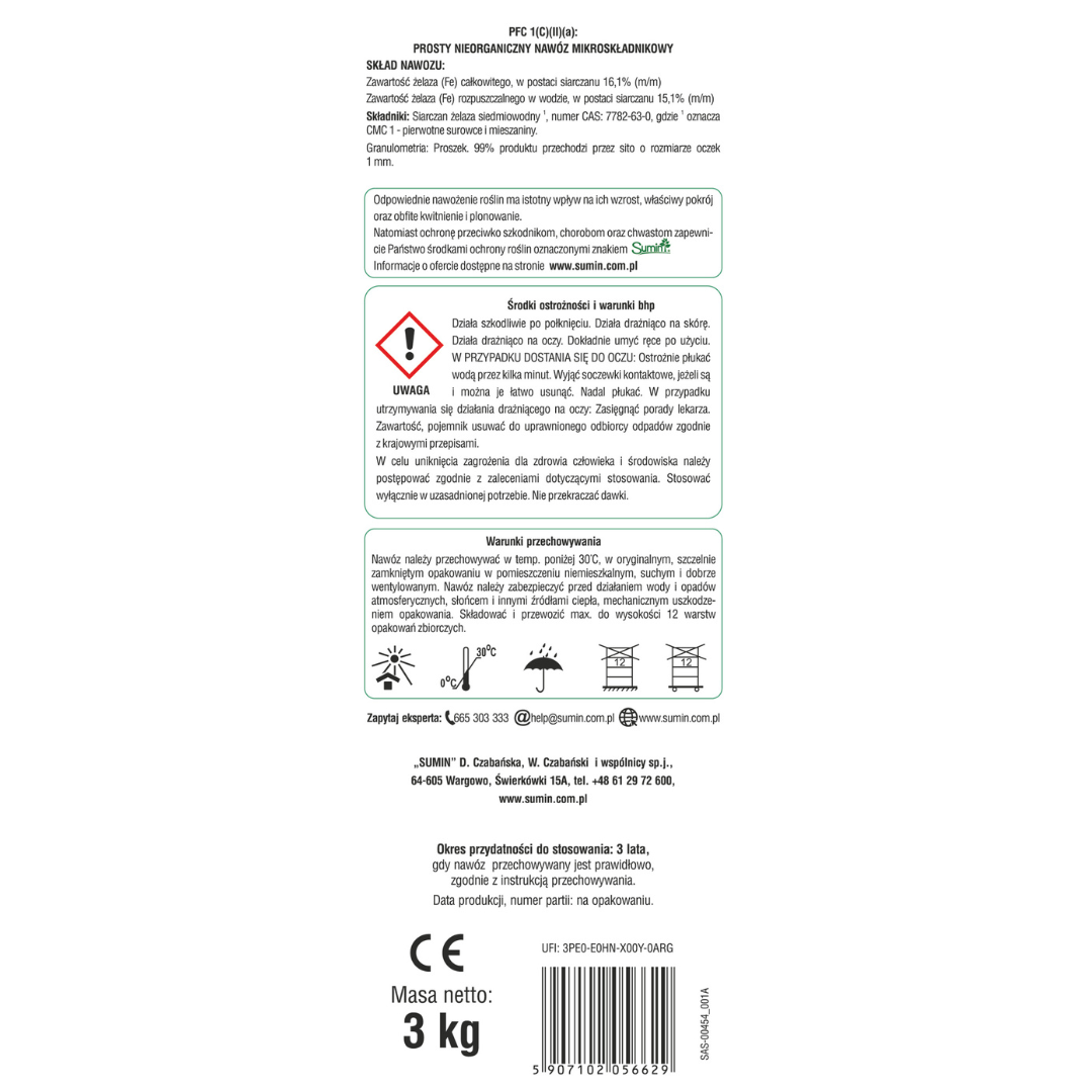 Siarczan żelaza – nawóz do roślin ozdobnych – 3 kg Sumin