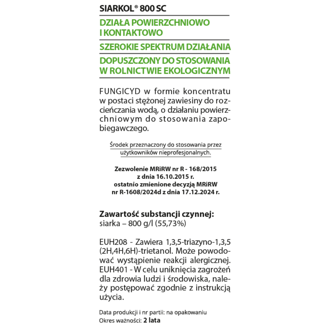 Zawartość substancji czynnej: siarka – 800 g/l (55,73%)