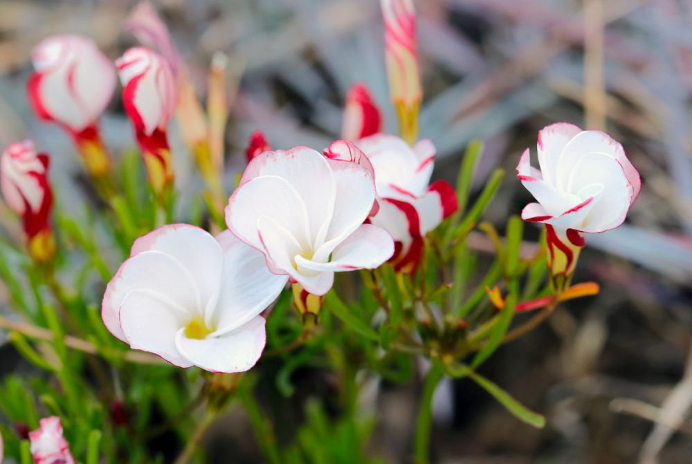 Szczawik Versicolor to niska, lecz wyjątkowo efektowna roślina, wyróżniająca się biało-czerwonymi, trąbkowatymi kwiatami o charakterystycznych pionowych paskach, które zamykają się w nocy i przy pochmurnej pogodzie. Osiąga wysokość 15-30 cm. Najlepiej rośnie na glebie lekkiej i przepuszczalnej oraz potrzebuje stanowiska słonecznego. Roślina doskonale sprawdzi się jako ozdoba na parapety, balkony, tarasy czy oranżerie.