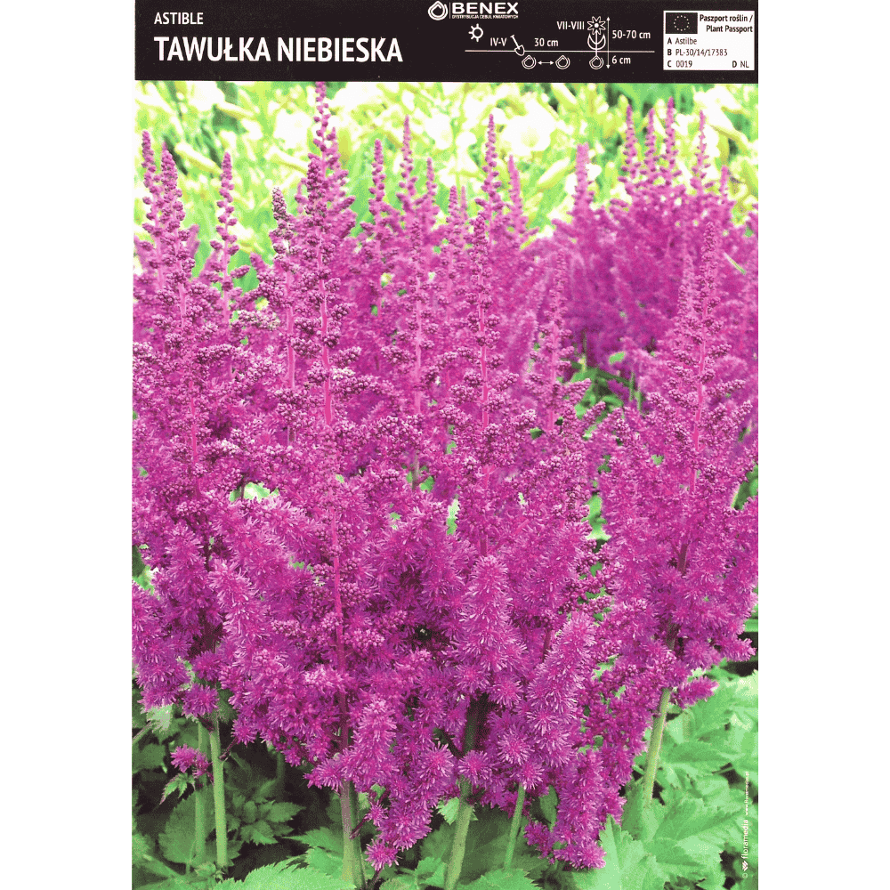 Tawułka niebieska to efektowna, dekoracyjna roślina wieloletnia, ceniona za puszyste, pierzaste kwiatostany w intensywnym niebieskim odcieniu oraz atrakcyjne, pierzaste liście. Kwiaty wyrastają w strzelistych, wiechowatych kwiatostanach, które pojawiają się od późnej wiosny do lata i utrzymują dekoracyjny efekt przez kilka tygodni. Roślina tworzy gęste kępy liści, które są ciemnozielone i elegancko podkreślają kontrast z kwiatostanami.