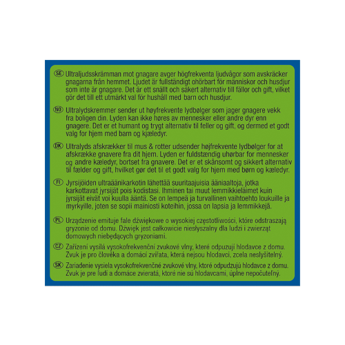 Ultradźwiękowy odstraszacz gryzoni to urządzenie, które emituje fale dźwiękowe o wysokiej częstotliwości. Dźwięki są niesłyszalne dla ludzi i zwierząt domowych (z wyjątkiem gryzoni). Ultradźwięki skutecznie odstraszają myszy i szczury, tworząc dla nich nieprzyjazne środowisko. Odstraszacz stanowi bezpieczną i wygodną alternatywę dla tradycyjnych pułapek oraz chemicznych środków zwalczania gryzoni.