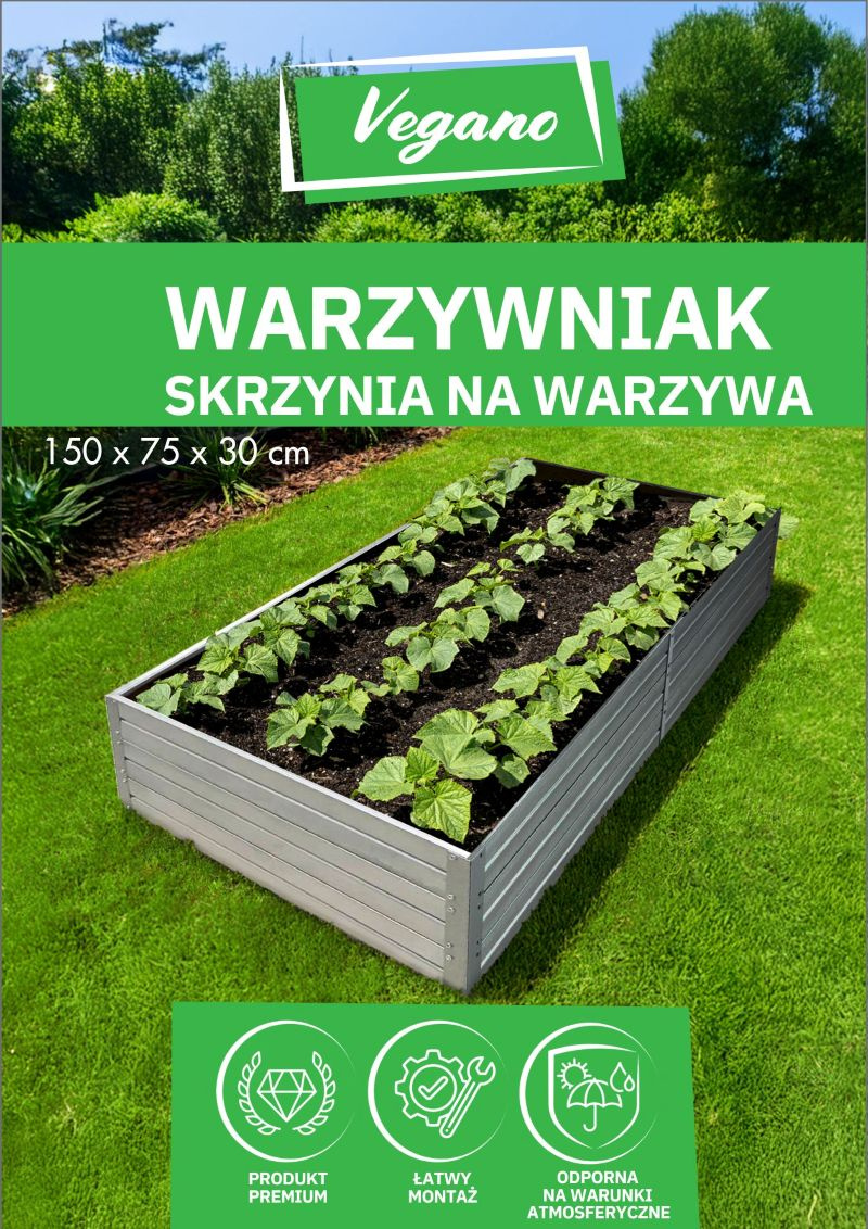 Warzywniak – podwyższona grządka – ocynk – Vegano - 150 x 75 x 30 cm