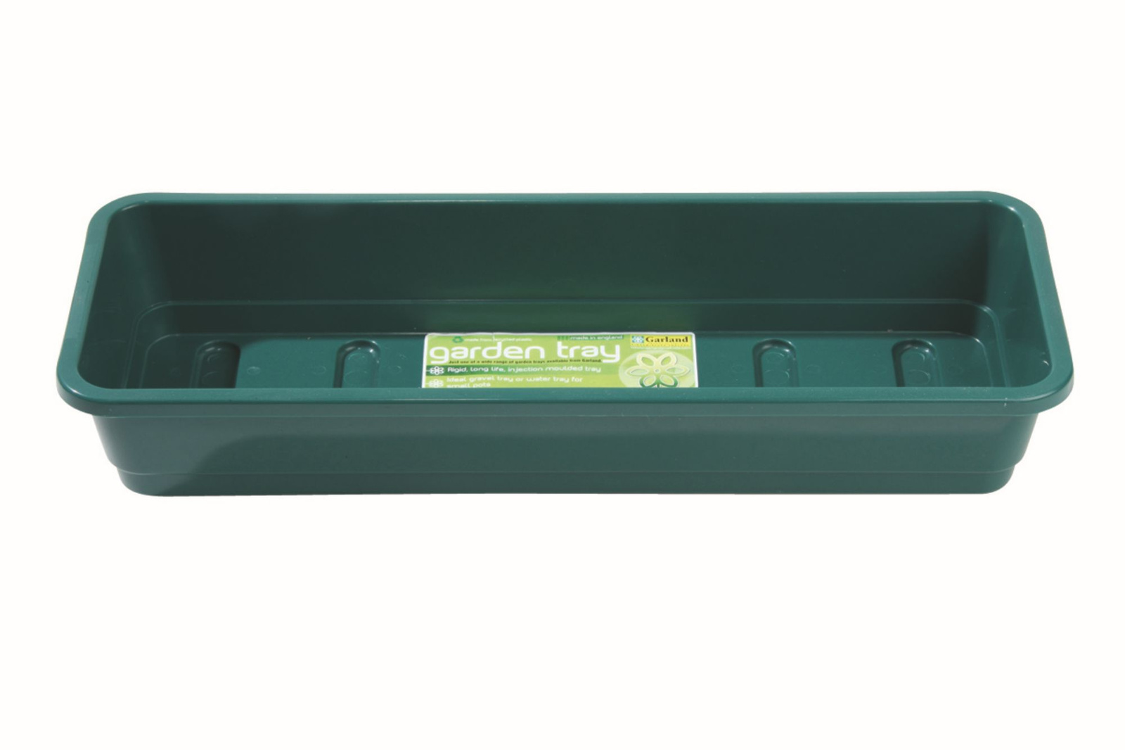 Taca ogrodnicza marki Garland w rozmiarze 37 cm x 13,5 cm x 6 cm. Ten model nie posiada na spodzie otworów drenujących – tacka świetnie posłuży jako podstawka pod wielodoniczki.