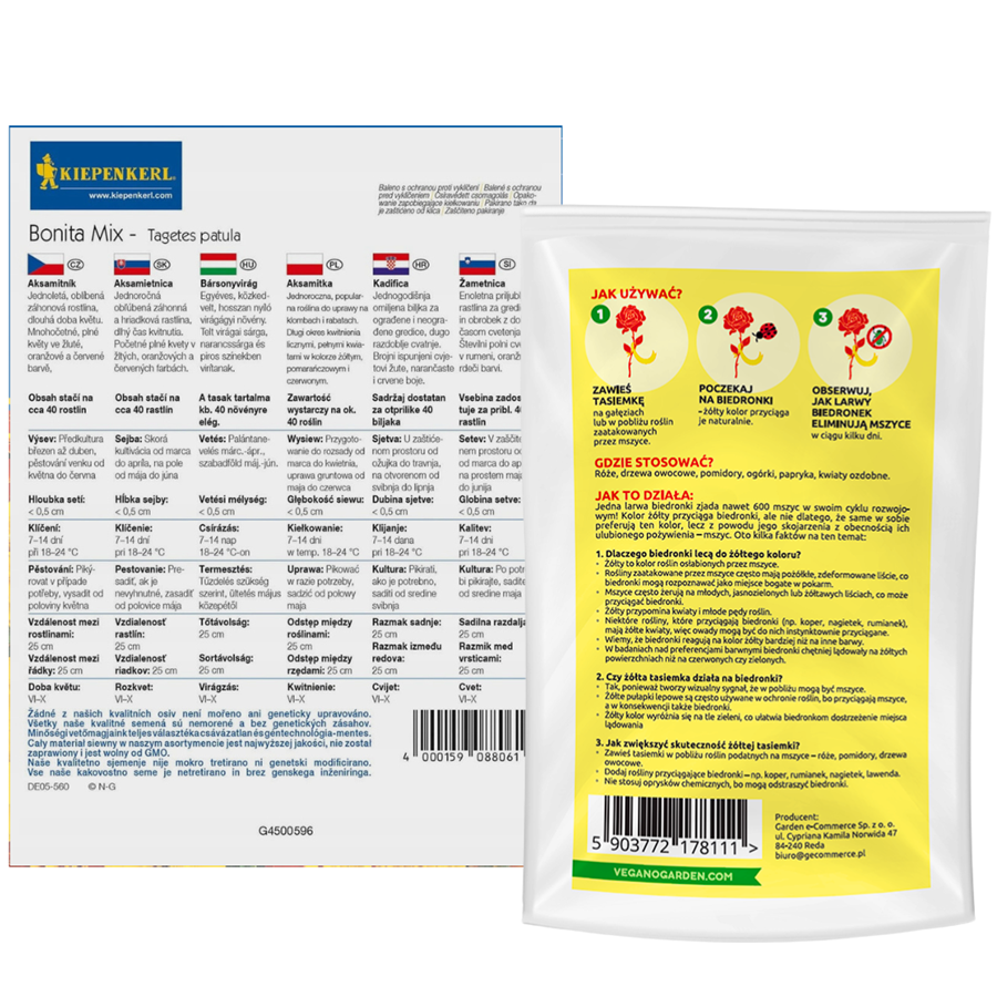 Zestaw Żółte tasiemki na mszyce Vegano 20 szt + nasiona Aksamitka Bonita Mieszanka 8806